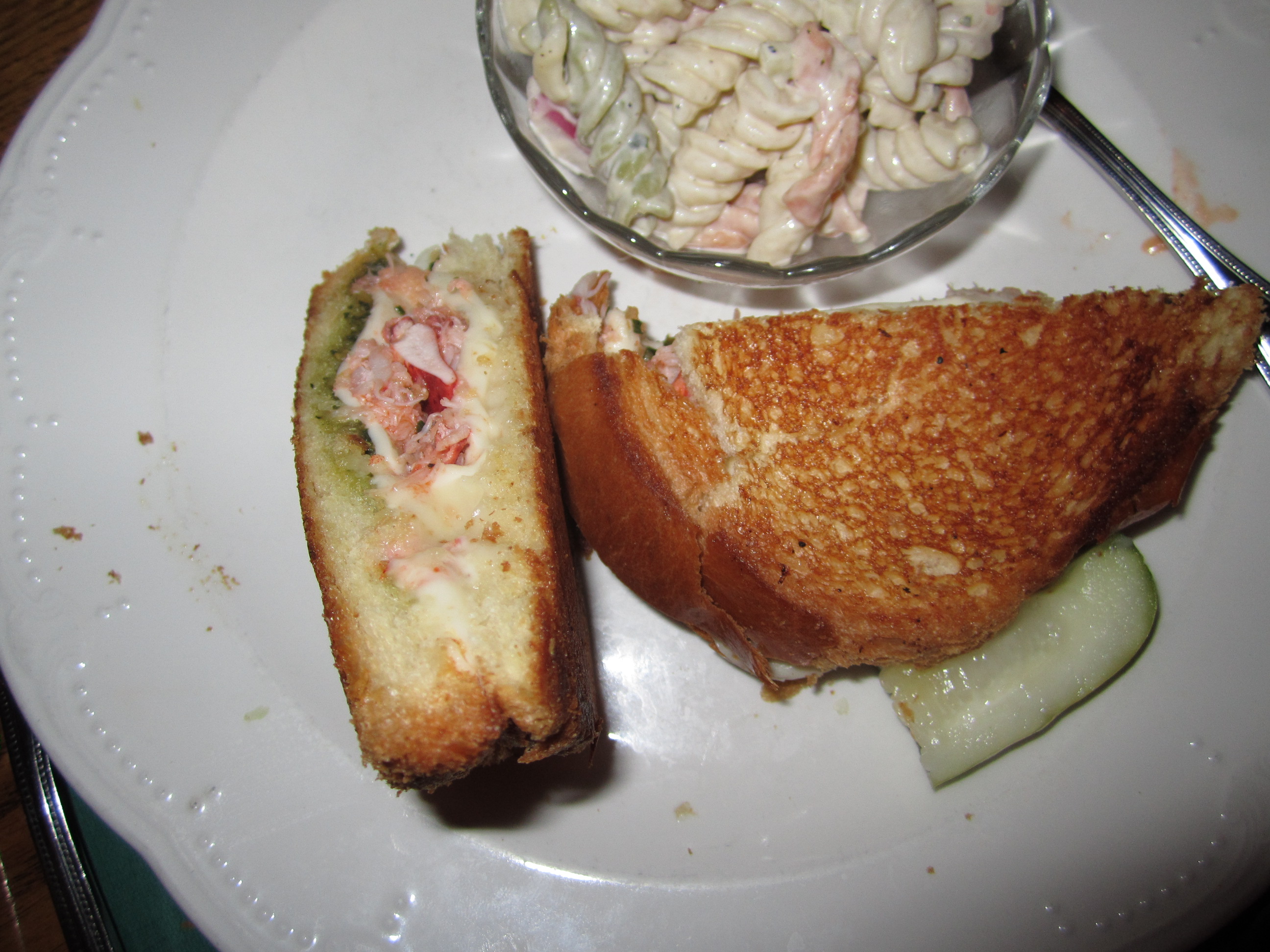 The Tavern at Dan’l Webster Inn, located in Sandwich, MA (Cape Cod), features a lobster grilled cheese. Set apart on the menu–centered, near the bottom as though the other dishes are its modest preamble–and proudly noted, “Voted Best Sandwich in Sandwich” you can’t miss it.