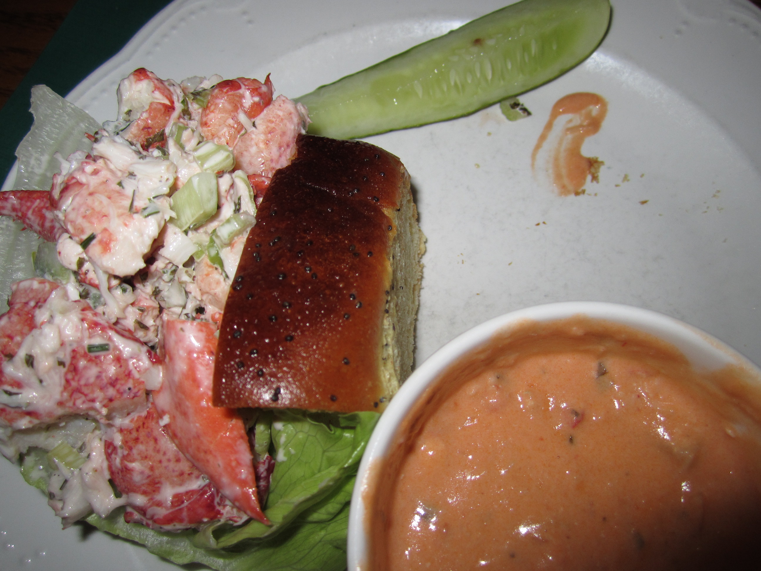 First, the lobster roll. It was exactly what a lobster roll should be. A crusty, lightly poppy-seeded bun was dwarfed by a portion of lobster salad meant for a larger or second roll. The salad itself had big chunks of chowder lubricated with just-enough mayonnaise. When I look at pictures of lobster rolls, I either see too much white or too much red.