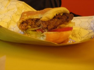 If you walk west down 52nd Street, you can’t miss Lucky’s Famous Burgers. It’s interior screams at you in yellow and orange tones and snares you in from the sidewalk. The tiny space boasts four tables and two counter spaces for your dining pleasure.