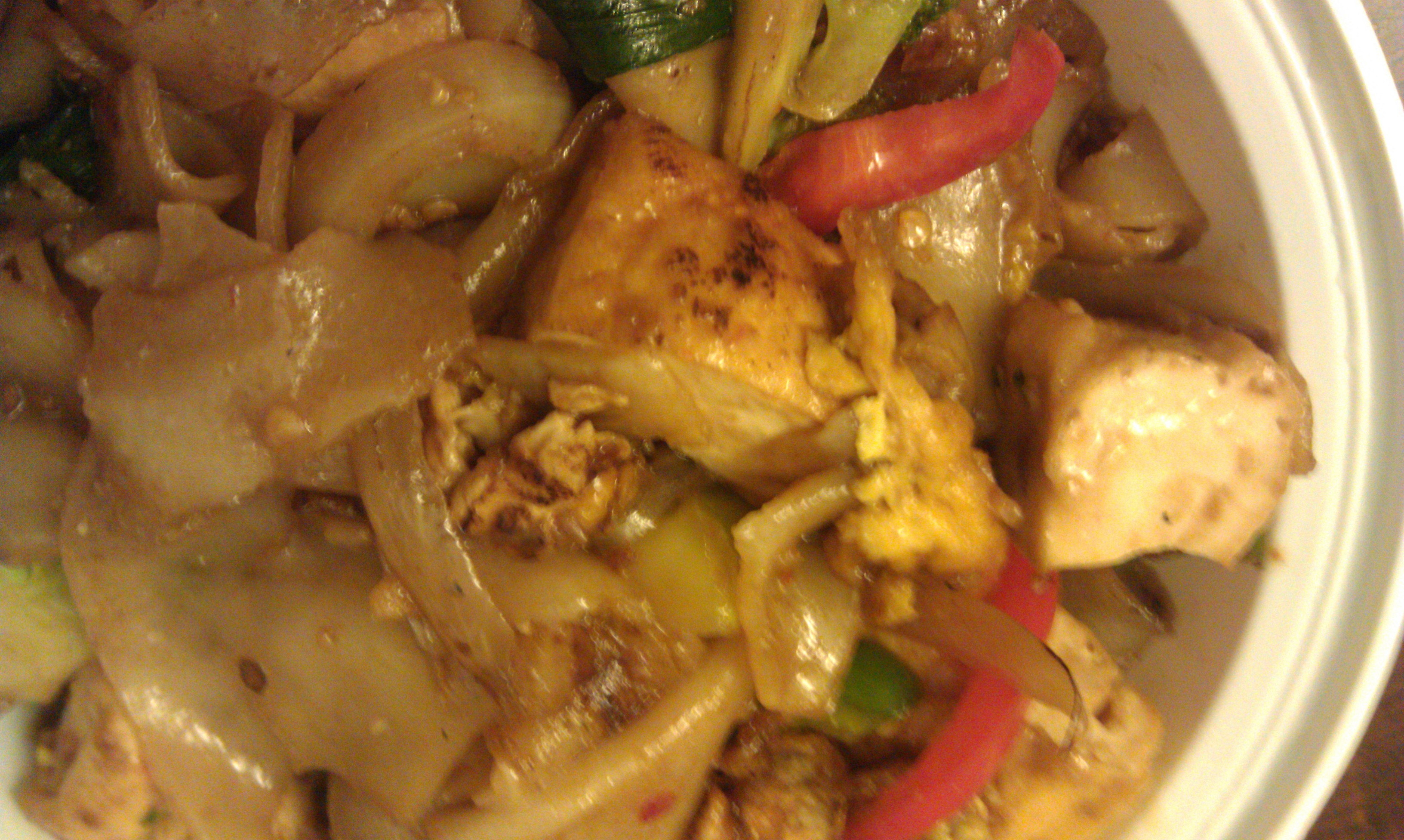My dining partner got the Pad Kie Mow with tofu, which was greasy and delicious. The tofu was tough, but had absorbed all the grease and juices oozing from the flat noodles. It was wonderful.