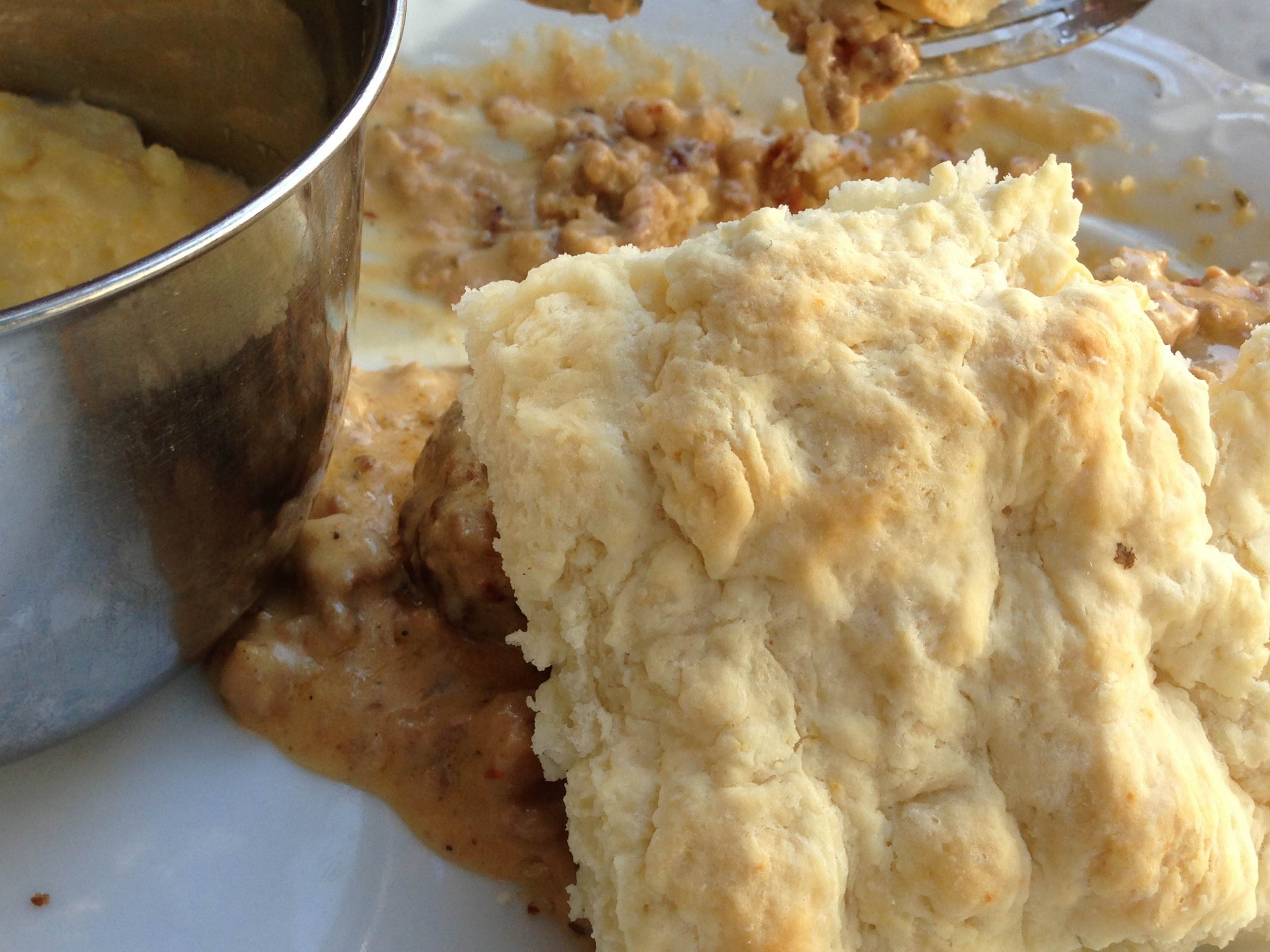 I knew I had to get a biscuit, so I inquired as to whether the western-cheese omelette was accompanied by one. The waitress said no, but could put one on the side for me. This reply pleased me.