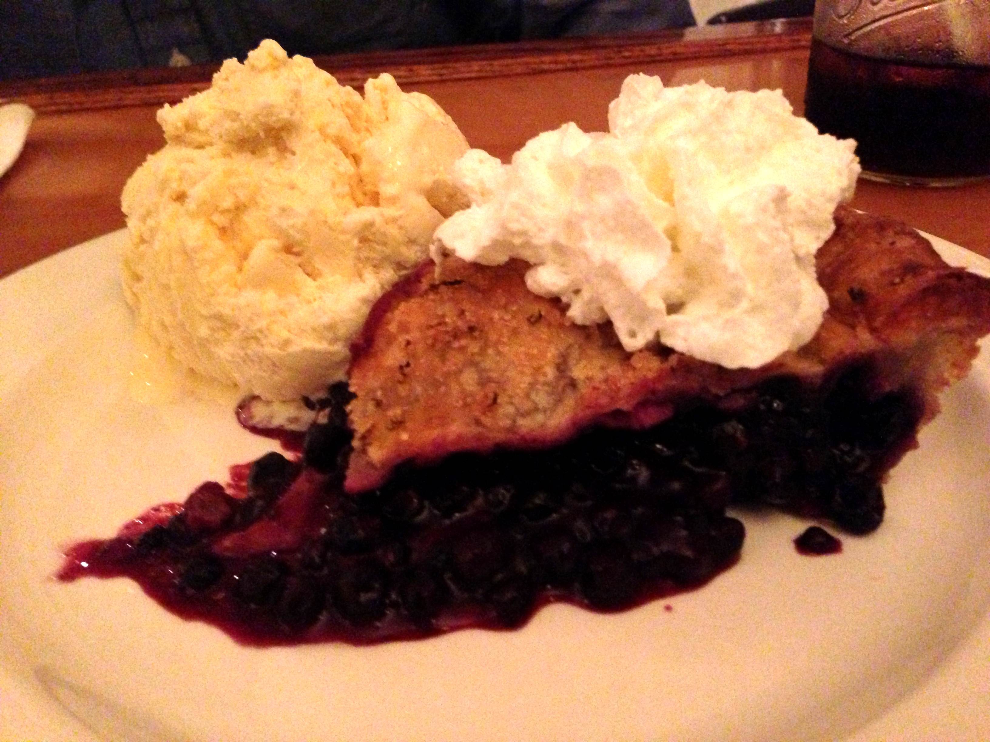 A trip to Maine wouldn’t be complete without a slice of blueberry pie. We ordered it warm with a scoop of delicious vanilla ice cream with whipped cream on top. The blueberries in the pie were whole and amply distributed throughout the pie shell.