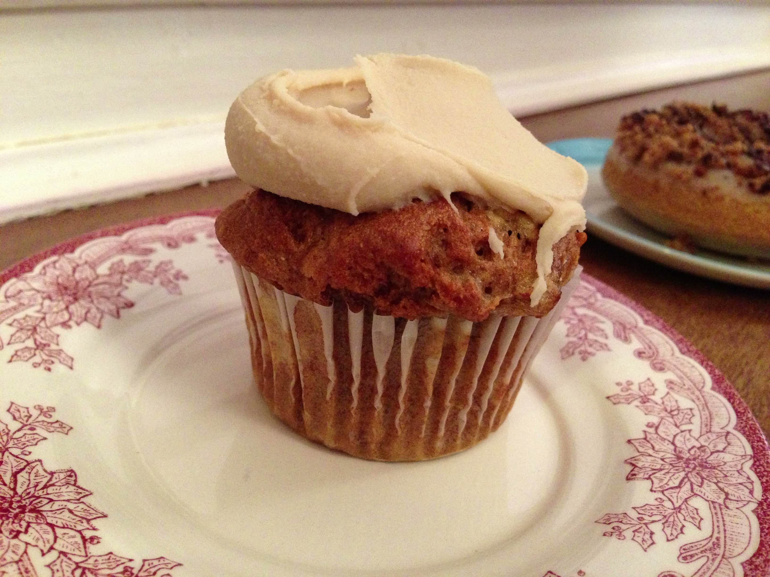 I selected a favorite of mine: a gluten-free banana cupcake. It was frosted with a subtle maple-inflected icing that nicely complemented the dense banana cake underneath it. BabyCakes refrigerates their cupcakes at, what seems to be, a moderate temperature, so the cake actually tastes cool and more firm than it would were it left standing on the counter. We noticed you could order a frosting shot for $1.50 and I considered it for a moment, so good was the maple topping.