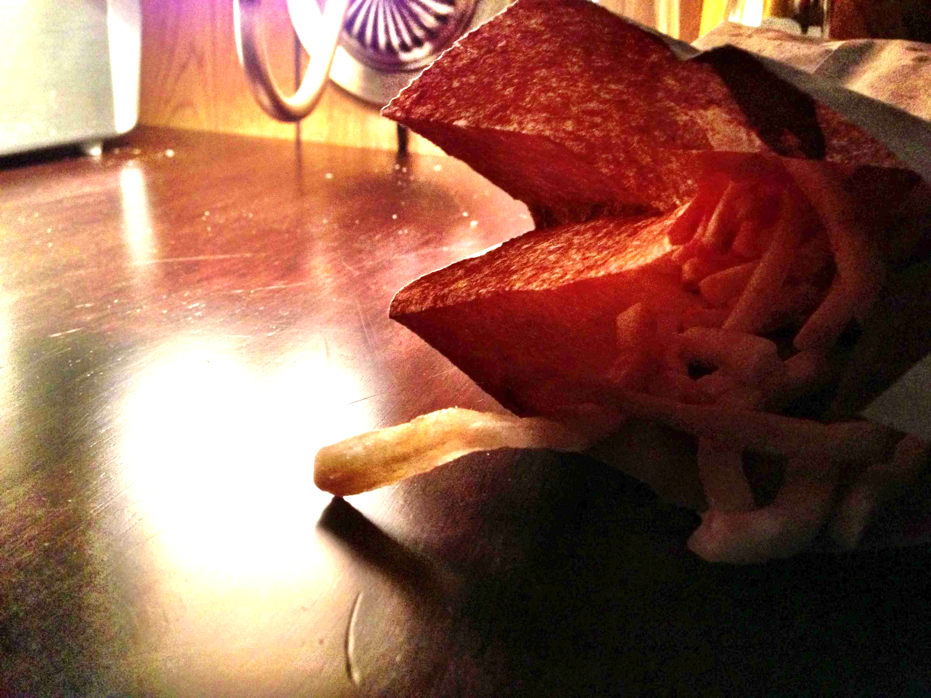So, how was the burger? Divine, as usual. The LPM Burger Joint serves up one of my favorite burgers, and the 8th Street location is definitely among the top contenders for best burger in the city. I ordered mine with “the works”: ketchup, mayo, mustard, tomato, lettuce, sliced pickles, and onion. All this was on a perfectly rendered patty topped with cheese and laid artfully on a squishy bun. Okay, so maybe it’s not artfully done (as you can see in the picture), but the taste is tops–and that’s what’s important, right?