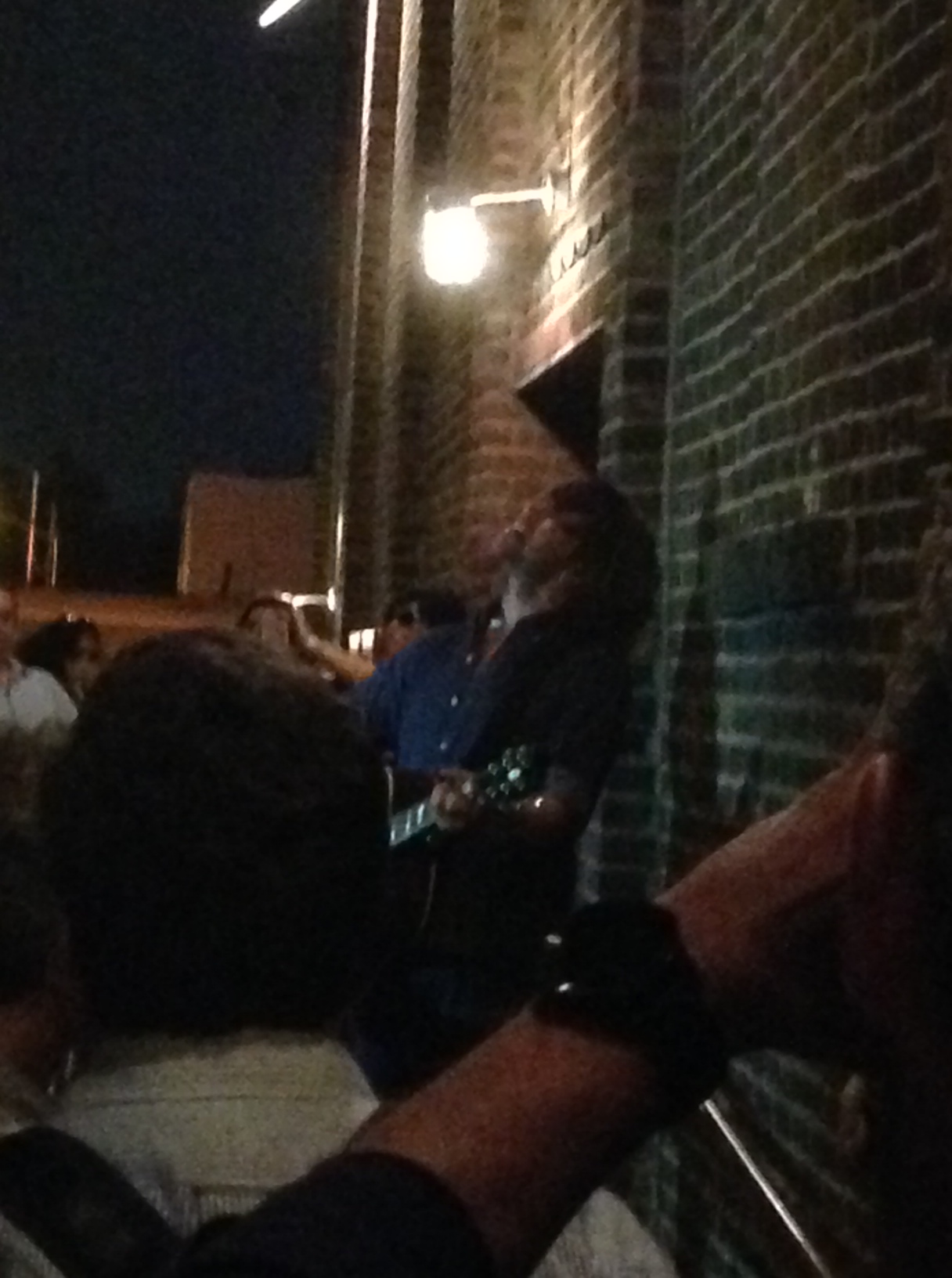 We waited around for about 40 minutes until we heard through the grapevine that the show was canceled. But I happened to notice Rhett traipse down the stairs and into the back of the stage. He was carrying his acoustic guitar. Suddenly, he was gone, and I thought, He must have gone outside. There we went, and we found Rhett singing on the sidewalk of Wythe, outside of Brooklyn Bowl.