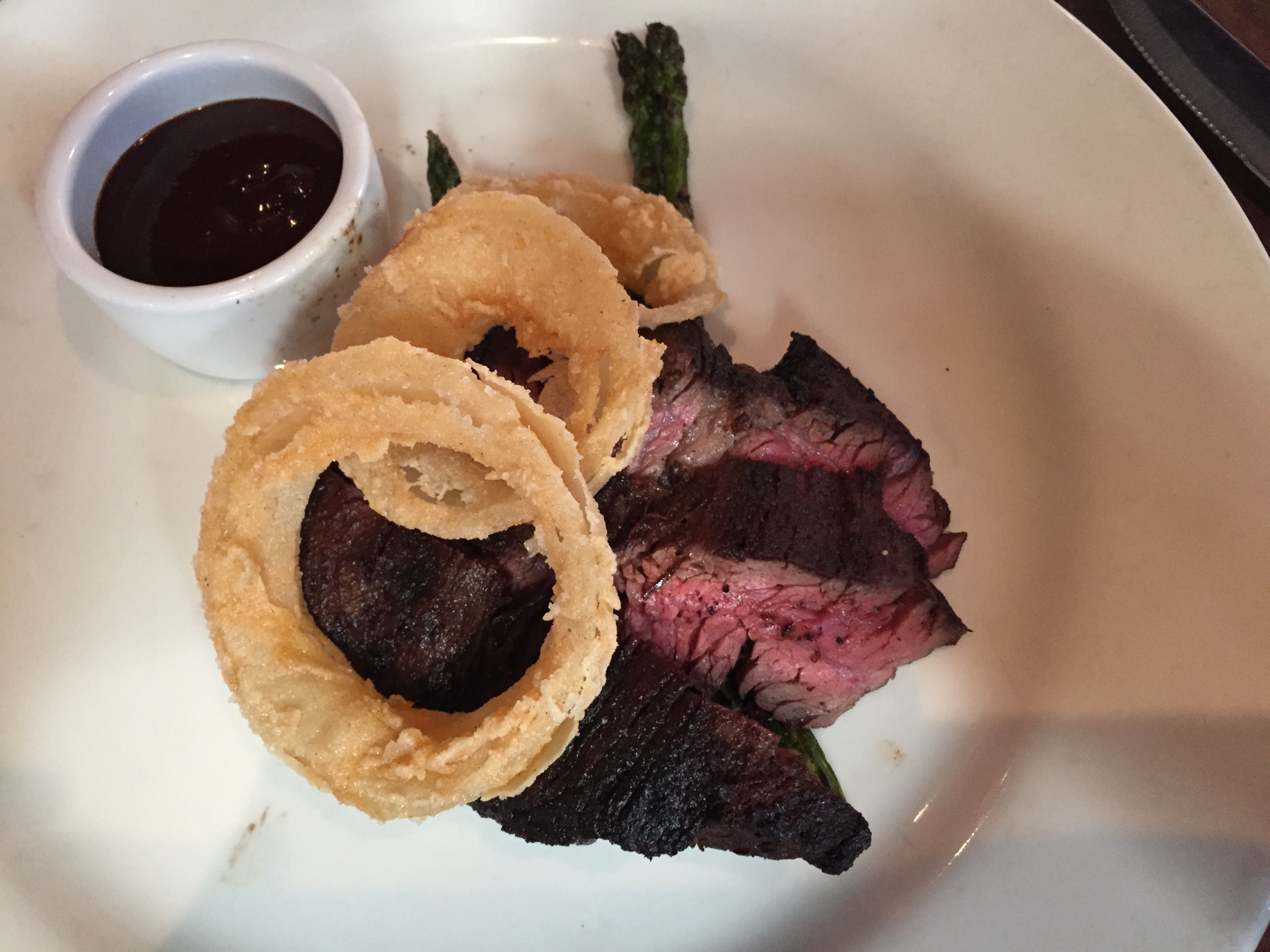 Wow is this place outstanding. Maybe I liked it because it reminds me of New York. Or maybe it’s just because the food is so damn good. Either way, Irving Street Kitchen offers some of the best food I’ve ever had. We started the meal with local wines and a cheese plate. First of all, the cheeses–a blue cheese and a cheddar–were completely delicious. As if the cheeses themselves weren’t the best ever, the chef went a step further, putting house made crackers that boasted a nuanced flavor and delicately crafted jams on the side. Amazing! A server also brought over some of the best bread ever, from Ken’s Bakery in Portland. Wow! For entrees, MDP got the fried chicken while I ordered the marinated hanger steak. The chicken was good, but not as flavorful as others I’ve had. But the steak–it was so tender and juicy. The asparagus that lay underneath the meat was thin and crisp, and the few onion rings they provided were fantastic. We didn’t stop there. We also ordered the chocolate cherry tart with matcha ice cream (not my favorite) and chocolate cherry curd. The curd stole the show in this dish–so creamy and rich with flavor. You’ll have to go here if you ever visit Portland. But make a reservation, if you can. They only have a few tables set aside for walk-ins.