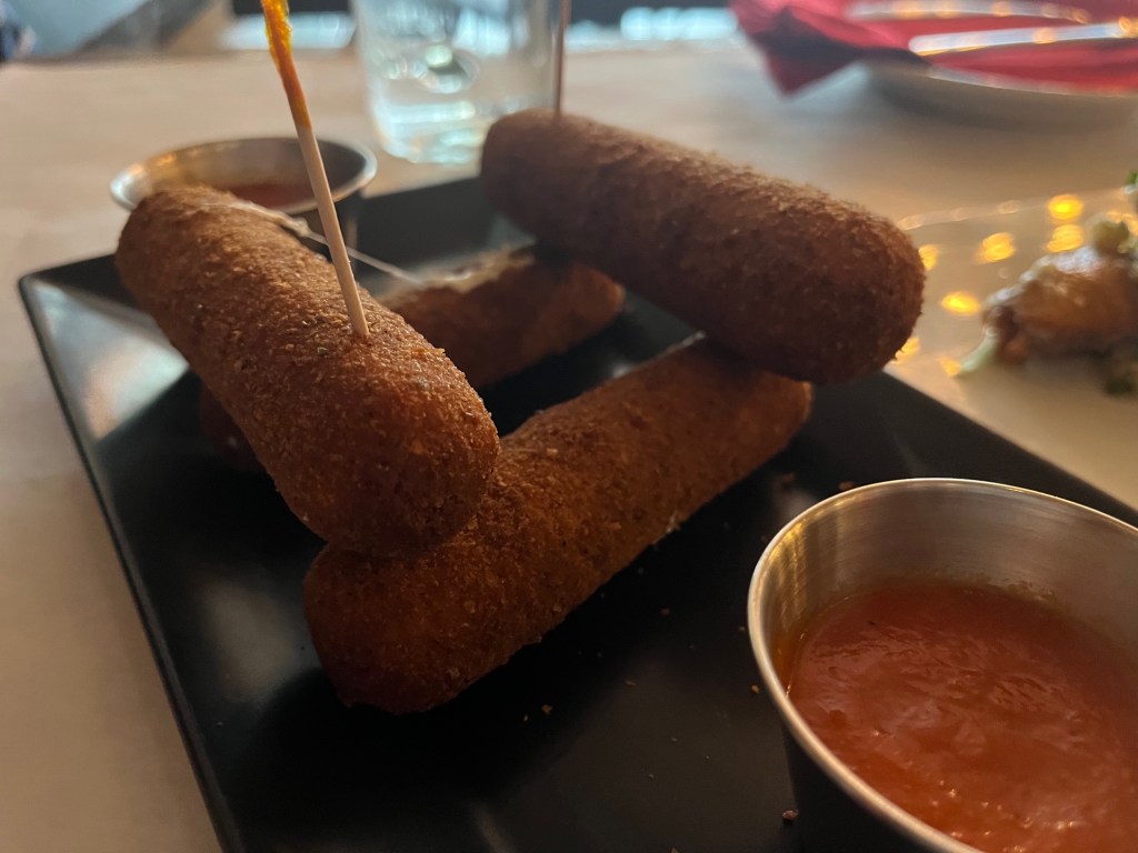 If you ask my daughter what the best starter is, she’ll tell you it’s the mozzarella sticks: truly fresh mozzarella covered in a lightly fried, tightly woven exterior, served with a smooth, creamy sauce – perhaps her favorite thing she’s tried in her three-ish years. The mozzarella sticks are gooey with just enough bite to satisfy kids and adults alike.