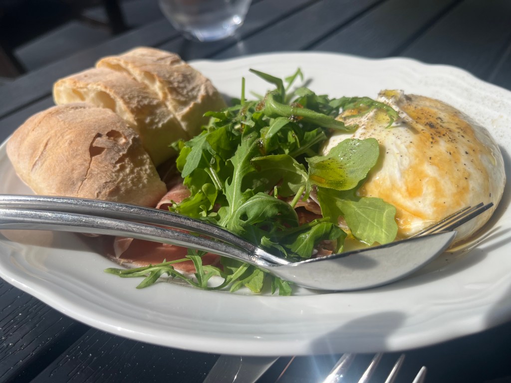 And yet the yearning persisted. So today, a quiet one at work, I popped over to Osteria LK for lunch. Talk about vibe shift. “Sit anywhere you like,” a welcoming man beckoned to me as I walked through the door. I chose an outdoor table – for four, no less! – and was promptly brought a menu with a simple but eye-catching colorway printed on premium paper stock.