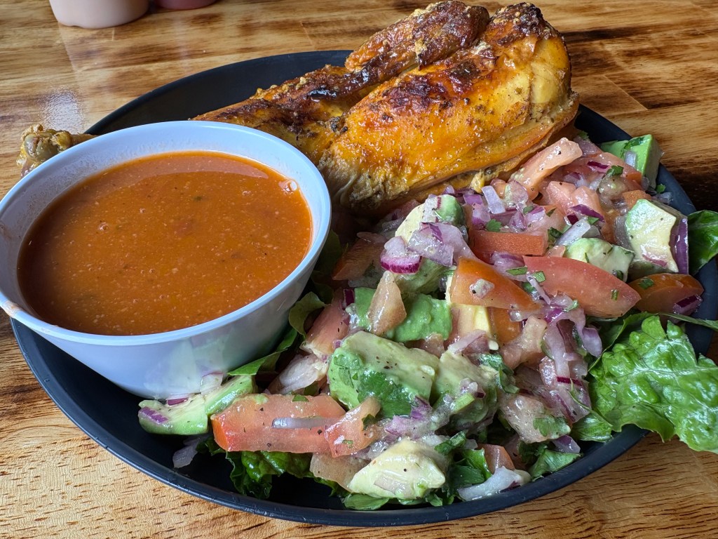 Since it was Thursday, I chose the pollo asada daily special. Entrees come with a choice of white rice or rice with pigeon peas, as well as beans, and I asked for “just beans” plus an avocado salad. I thought I was ordering two dishes, but Taino’s kindly served me one dish with chicken, beans, and a side portion of the avocado salad for no extra charge.
